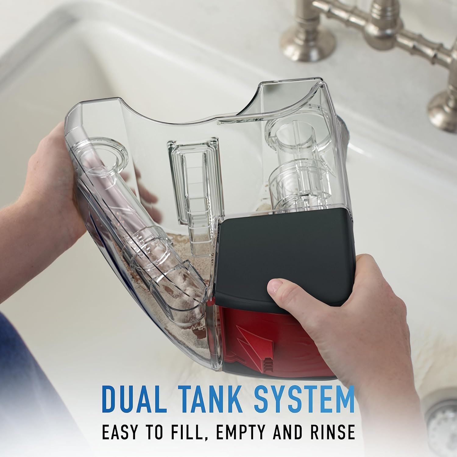 The dual tank system of the Hoover PowerDash Pet Carpet Cleaner separates clean water from dirty water, making the cleaning process more hygienic and efficient. The clean water tank holds fresh cleaning solution, while the dirty water tank collects used water and debris. Both tanks are removable for easy rinsing, ensuring your carpets are always cleaned with fresh water and solution.